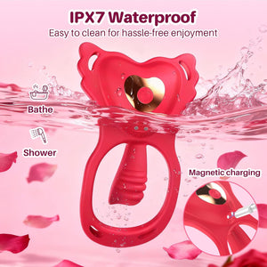 Velvet Whisper combines a wearable butterfly vibrator, G-spot stimulator, and penis ring into one heart-shaped couples toy. Designed to ignite three pleasure zones at once—C-spot, G-spot, and penis base—every movement enhances shared intimacy and brings deeper, synchronized pleasure for couples, beginners and experienced users alike.