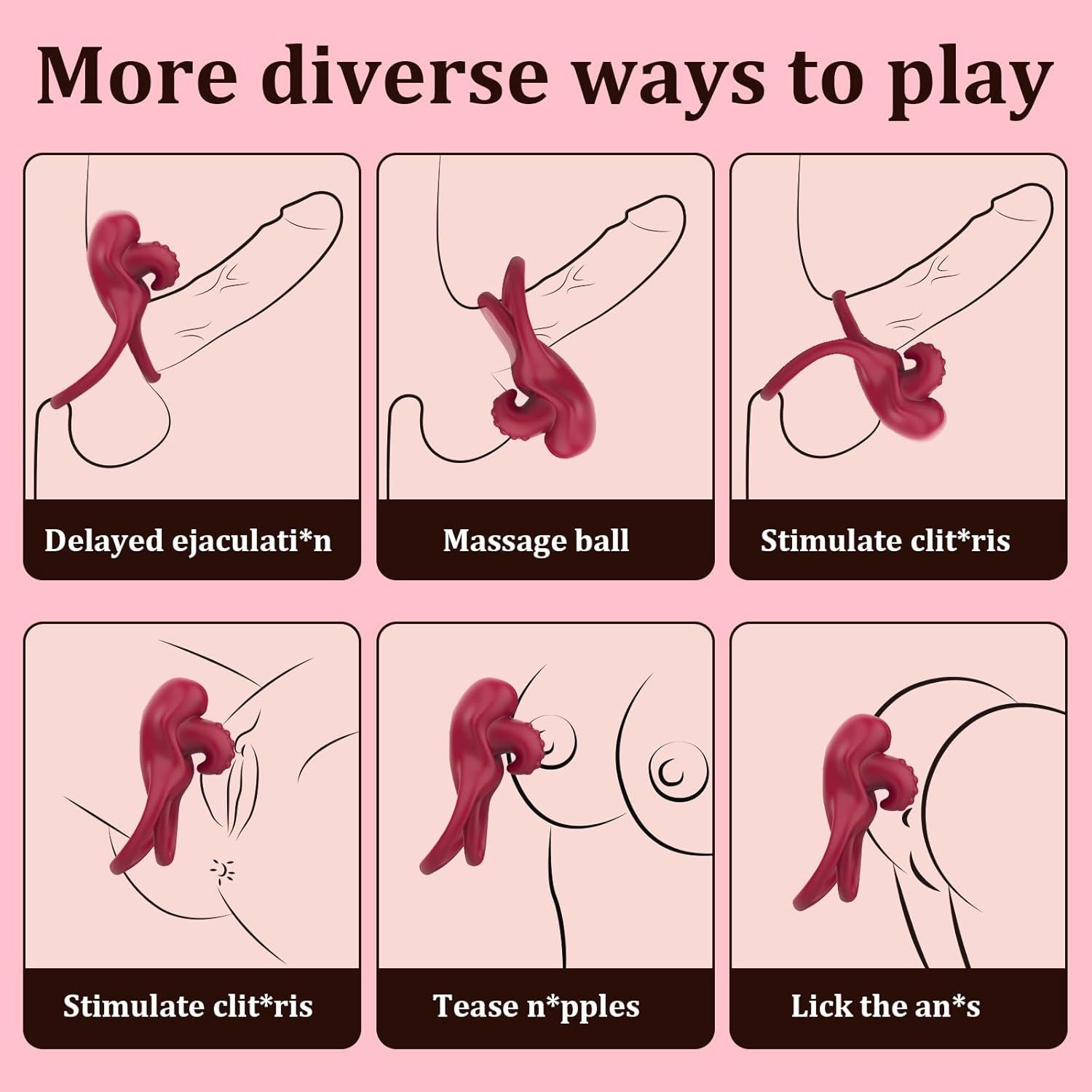The interlocking loops keep everything in contact during any position. Light tension naturally delays climax, extending intimacy and intensifying release.