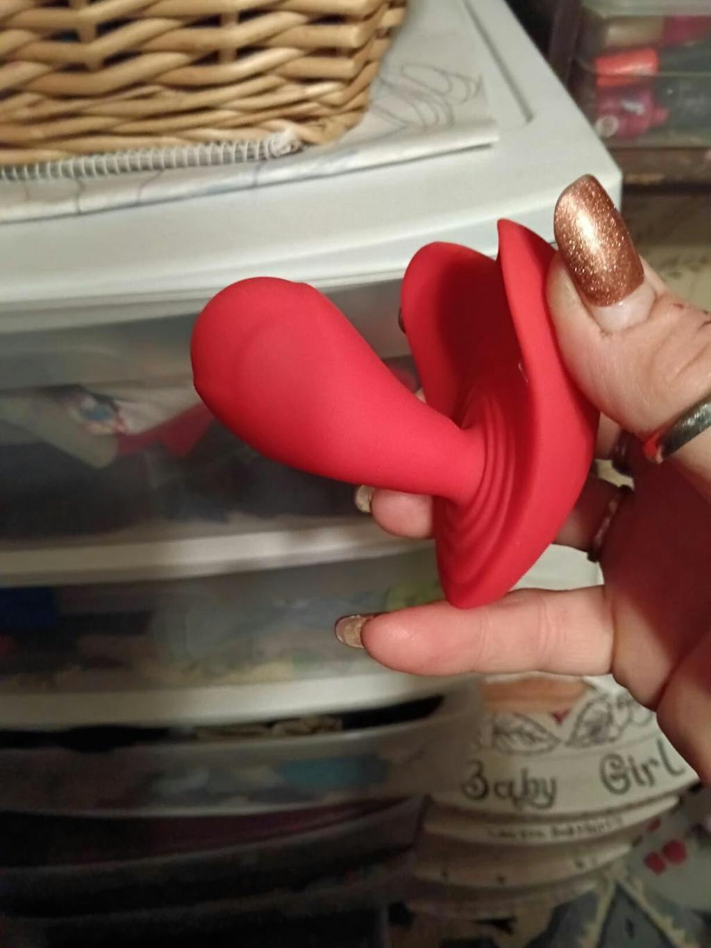 This is probably the fourth one I bought that is wearable. It fits there without you wearing the little black string thing. It has a nice amount of different vibrations. The entire thing also vibrates and it’s very strong! It’s not painful , it’s very smooth and easy.